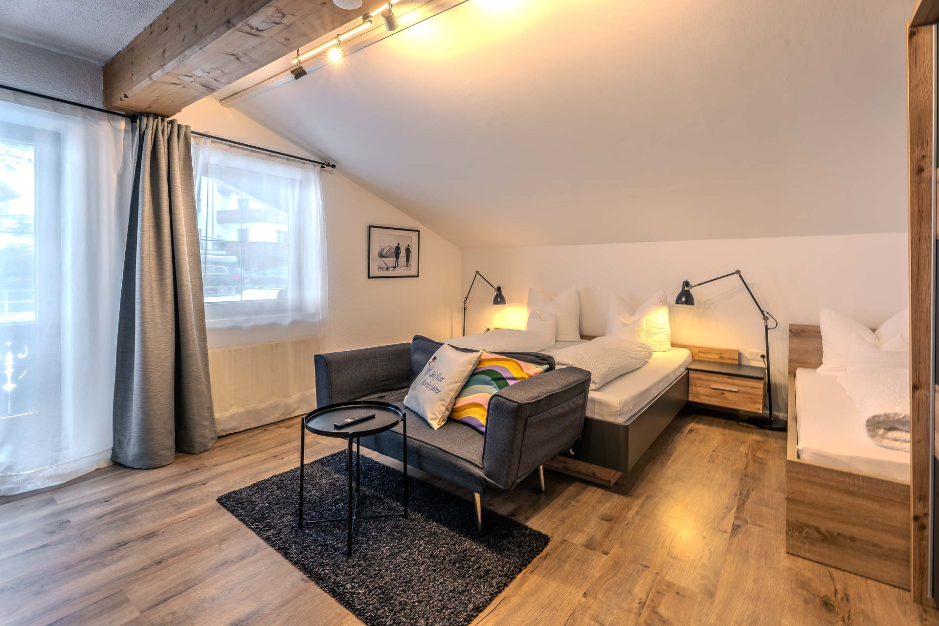 Wir sind der perfekte Ort für Ihren Familienurlaub. Von unserem Apartment aus erreichen Sie neben der Gondel, Lebensmittelgeschäften, Restaurants usw. auch das Freizeitzentrum KABOOOM, Spielplätze und Spazierwege in nur wenigen Gehminuten. Auch unser geräumiges Apartment hat genug Platz zum Spielen für die Kleinen. Auf Anfrage bieten wir Ihnen gerne zusätzliche Ausstattung wie Kinderstühle, Wickelauflagen, Babybett und andere Dinge, die Sie benötigen.